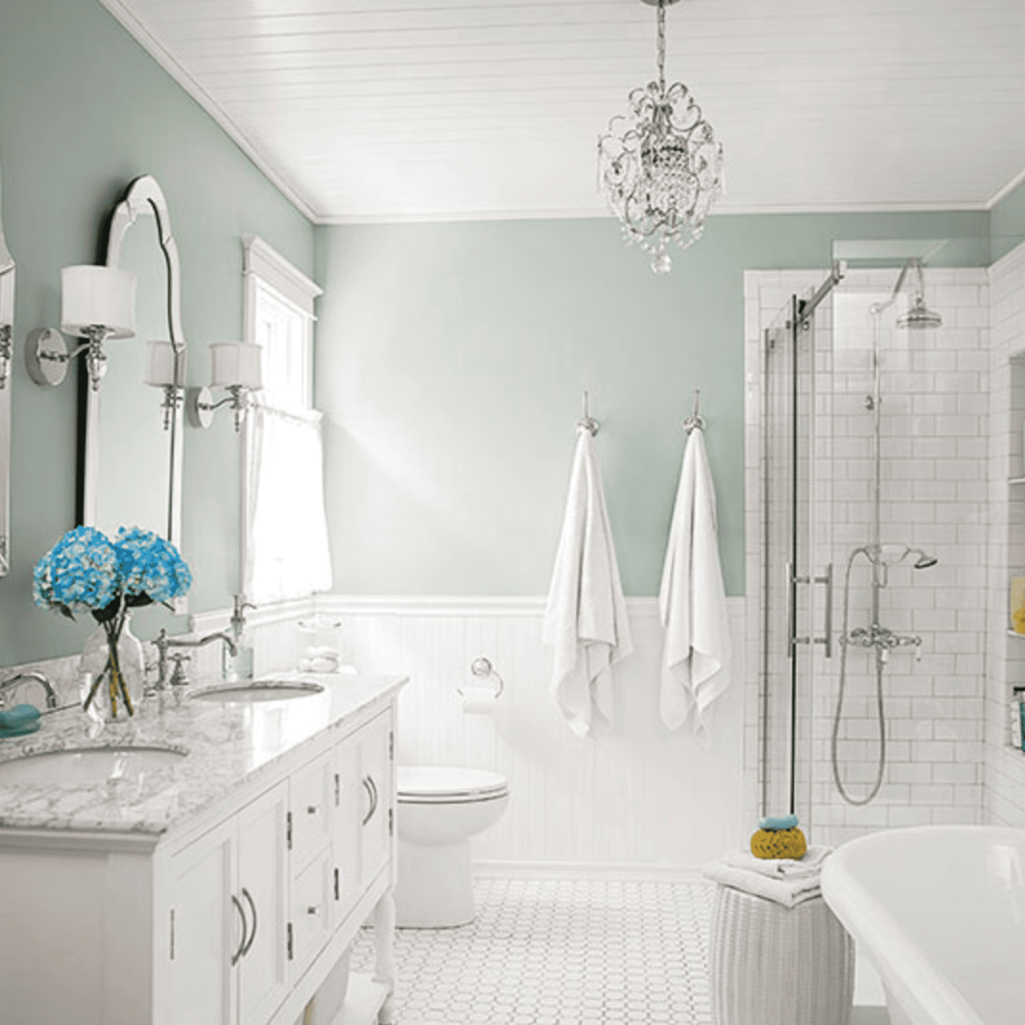 If you want to make a tight space seem larger and airier, paint the ceiling a lighter version of the hue painted on the room’s walls or simply white.