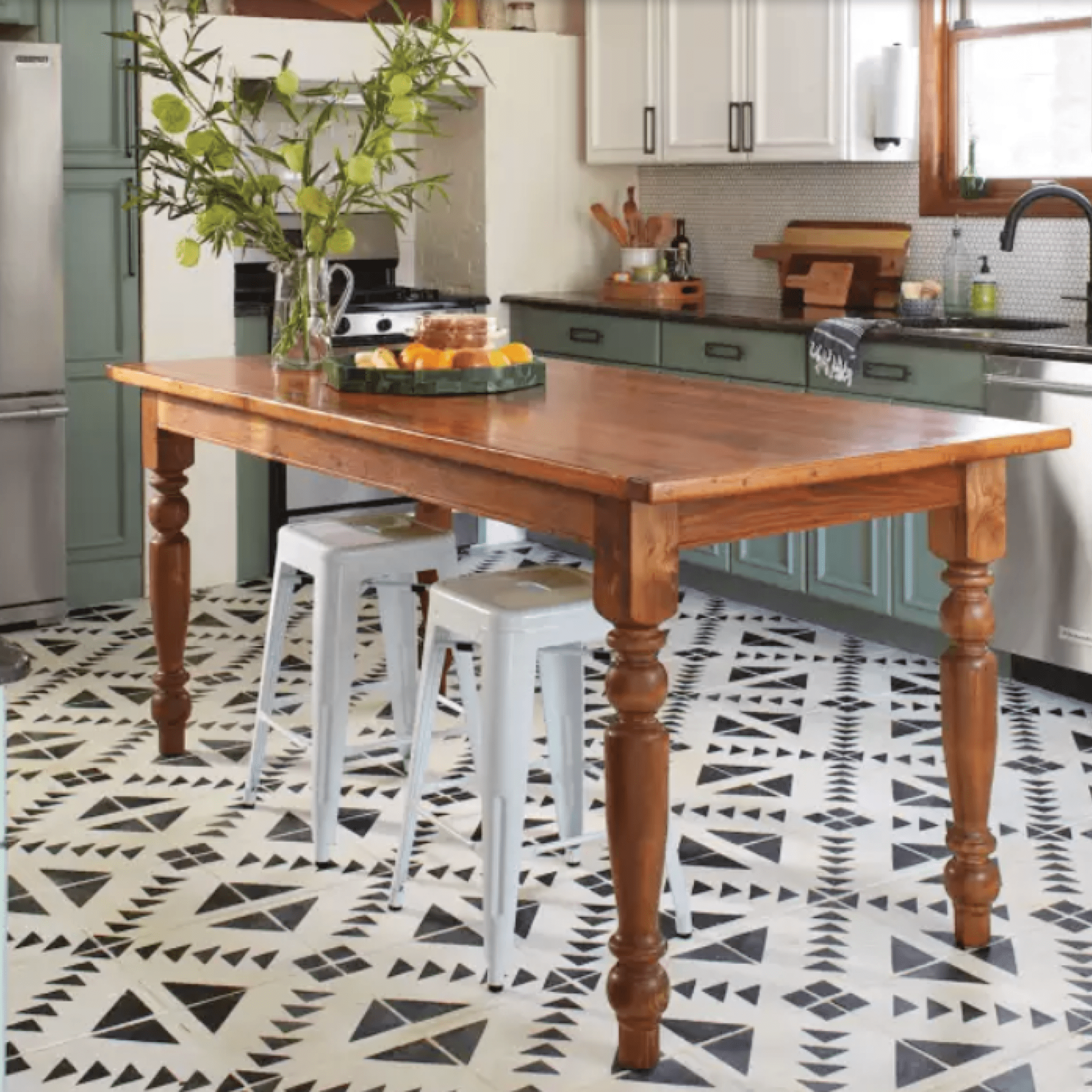 If you don’t have a budget to replace your floors right now, why not try painting them fully or with a pattern, to mix things up. You’ll be surprised how fresh your space will look with a little bit of paint…on the floor!