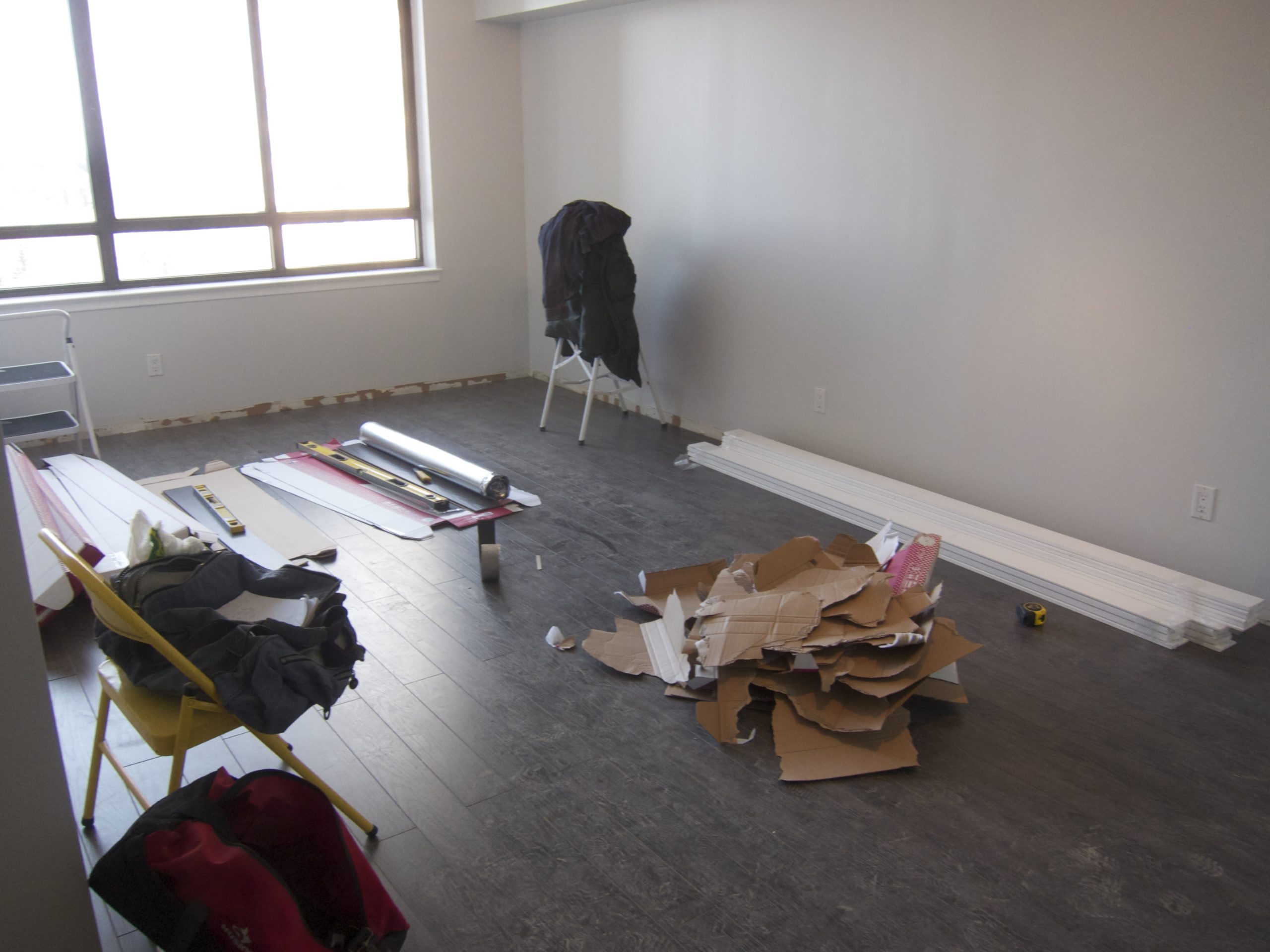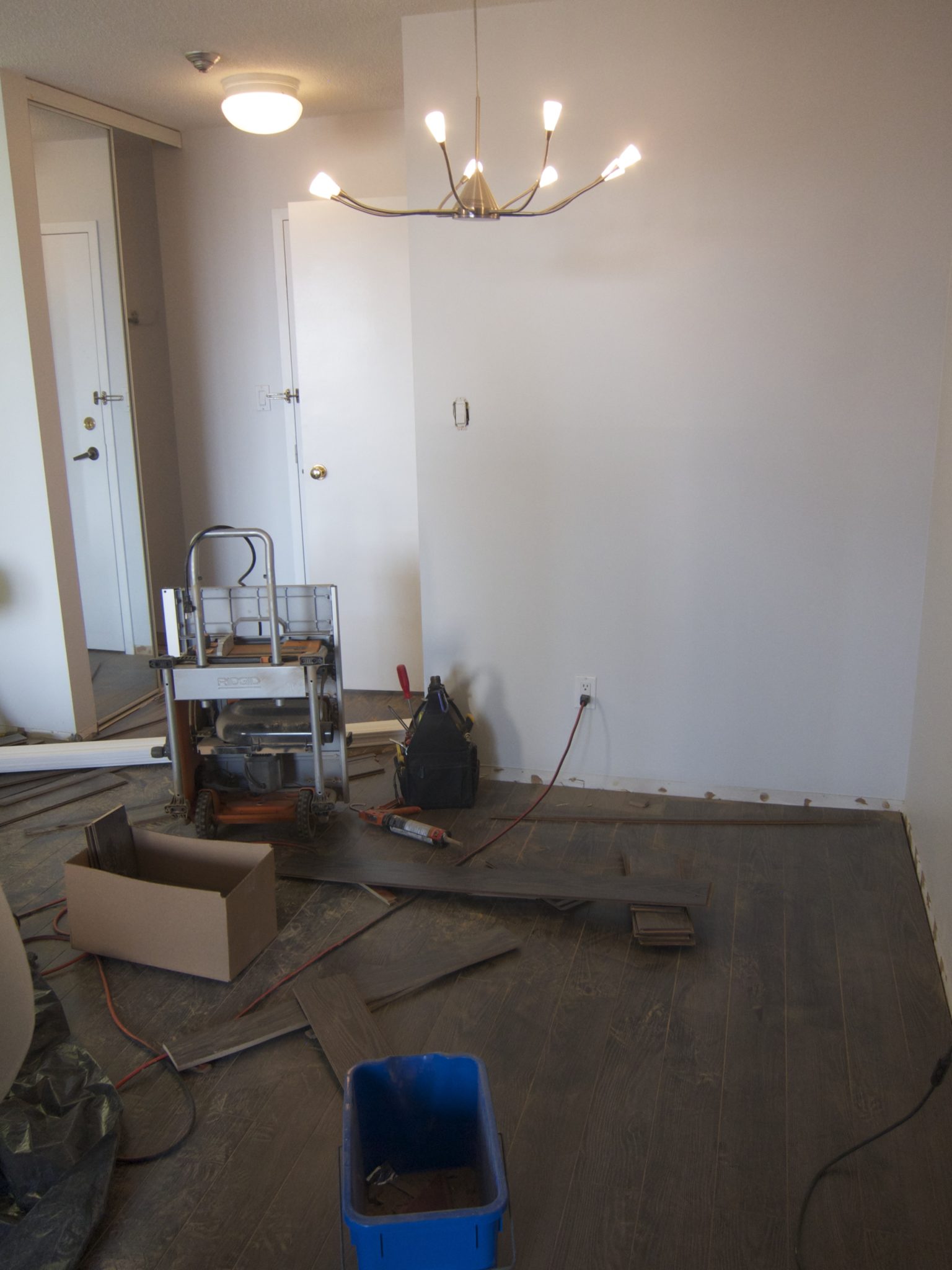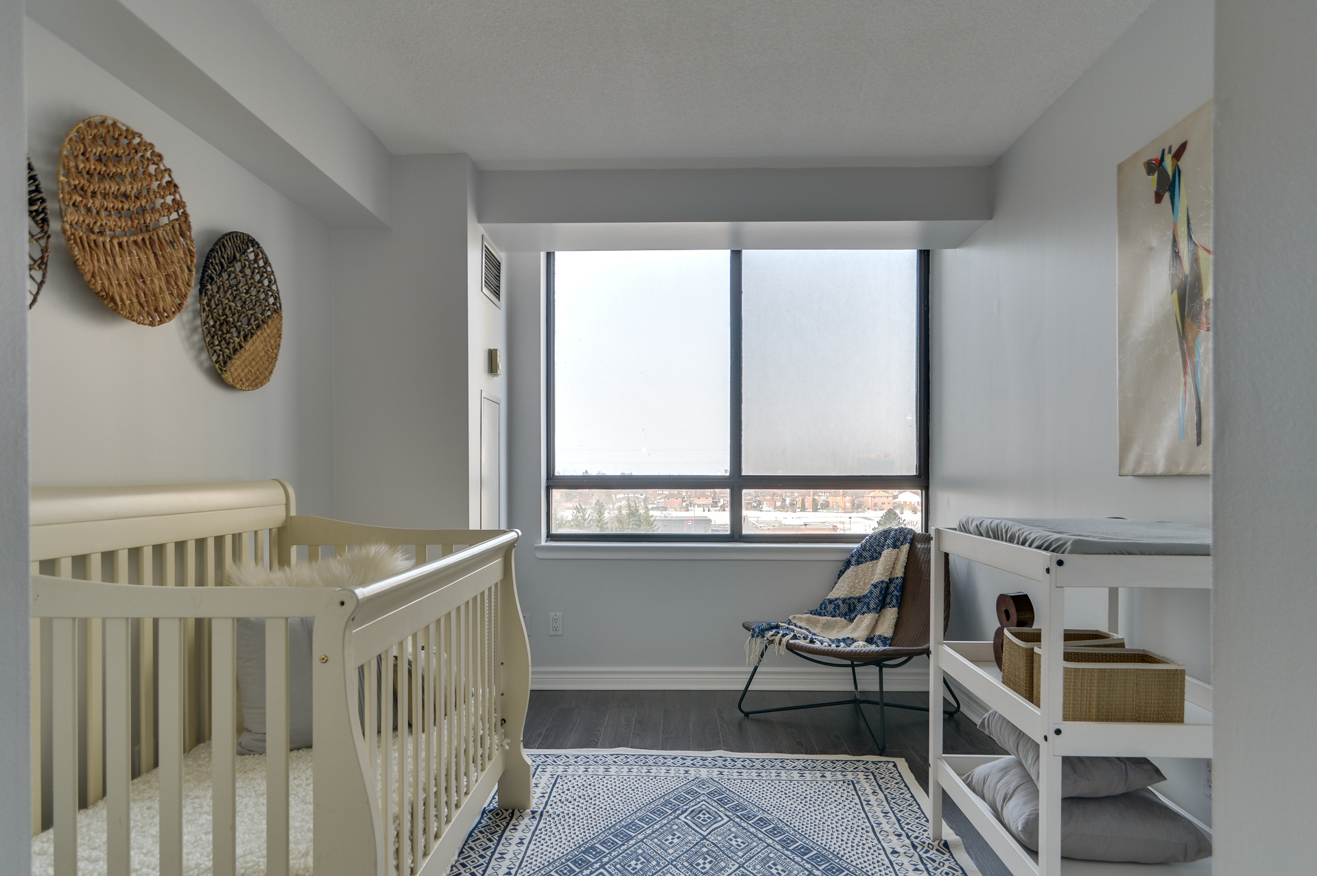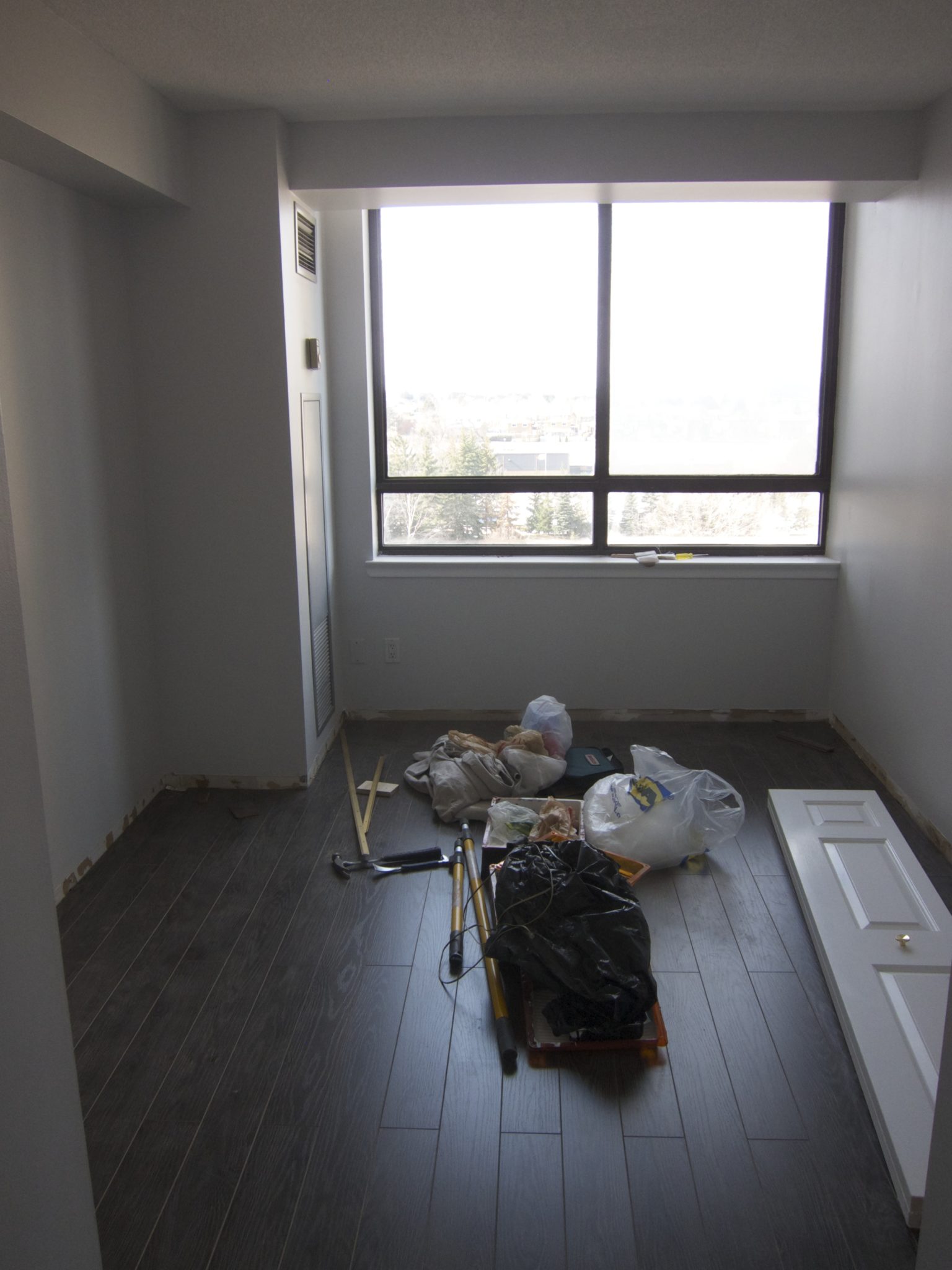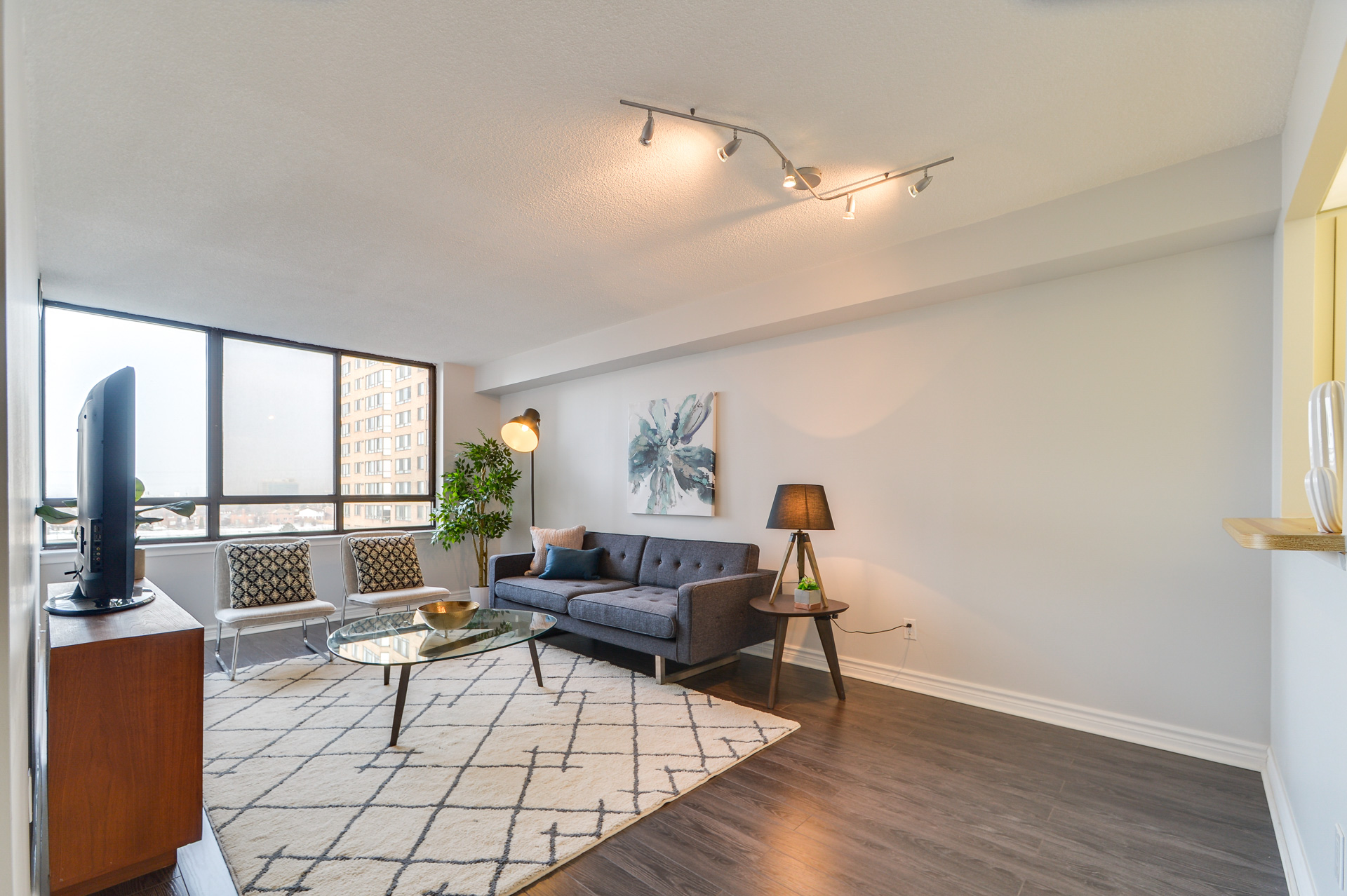 After our initial meeting and assessment of Nadine’s condo, we came up with 3 renovation scenarios, all with different price points, for her to choose from. We broke down the numbers in a spreadsheet, so that she could easily see, how much more money the condo could sell for, based on the different renovations required. After choosing the scenario Nadine felt most comfortable with, we got to work. The entire condo was going to be repainted, old carpet was going to be ripped up and replaced with laminate flooring and some of the light fixtures were going to be replaced. We guided Nadine into choosing a neutral paint colour that would make the condo look fresh, modern, and bright. Next up was the laminate flooring, again picking something that was durable, neutral, modern and within her budget. Lastly a trip to some of our favourite stores resulted in updated light fixtures. All of this, paired with our modern, in house staging inventory brought this condo into the 21st century.