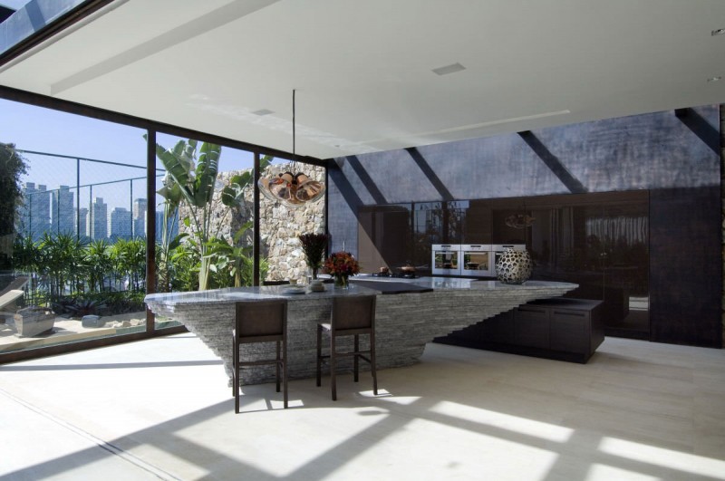 Well, wonder no more as this Basilian home, designed by Fernanda Marques, does just that. This is a one storey, almost 2700 square foot house with lots of cool features and decor. There are multiple decks that link various rooms to the outdoors, glass ceilings and floor to ceiling glass windows and doors, making it very hard to distinguish whether the home is indoor or outdoor.