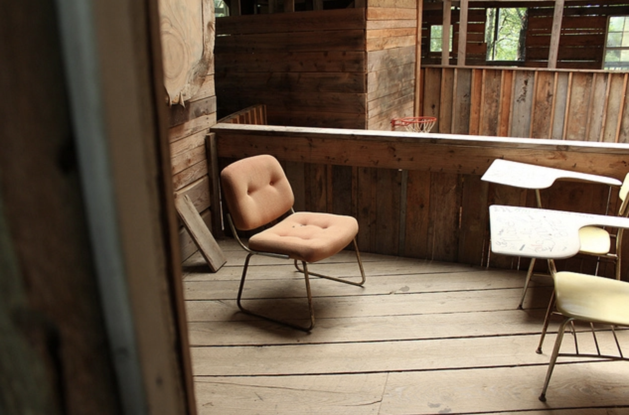 It has 80 different rooms, a church, a bell tower and, as the southern fashion requires, a 360 degree deck surrounding the building. However, instead of the bells, the tower has oxygen acetylene bottles that chime every day.
